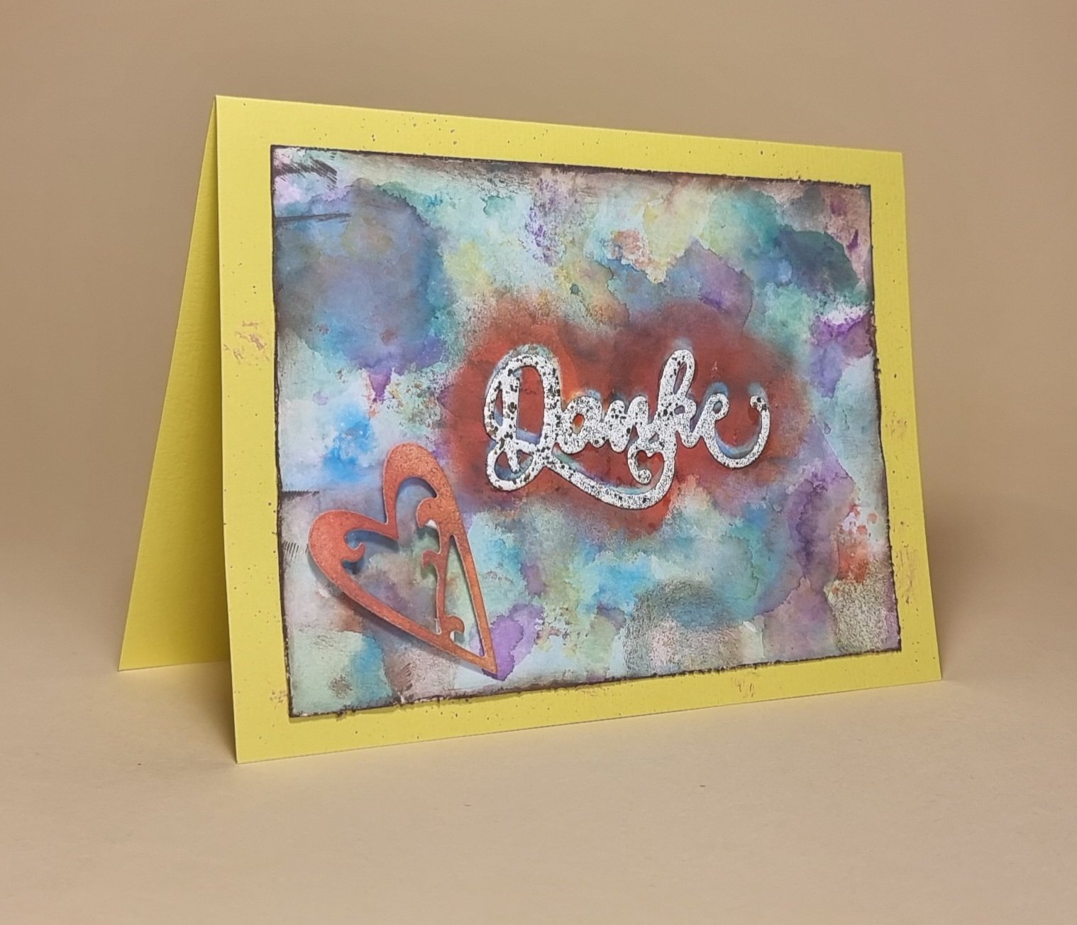 Der Hintergrund ist mit verschiedenen Stempelfarben coleriert.